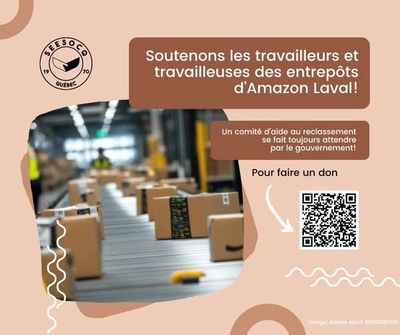 Lors du conseil des personnes déléguées (CPD) du 3 mai dernier, le SEESOCQ s'est doté d'une résolution en soutien aux plus de 1 900 travailleurs-euses licencié-e-s des entrepôts d'Amazon du Québec dont certain-e-s étaient récemment syndiqué-e-s avec la CSN et d'autres étaient en processus de syndicalisation. En effet, les 287 employé-e-s de l'entrepôt DXT4 d'Amazon de Laval sont syndiqué-e-s au sein du Syndicat des travailleuses et travailleurs d'Amazon Laval- CSN (STTAL-CSN).