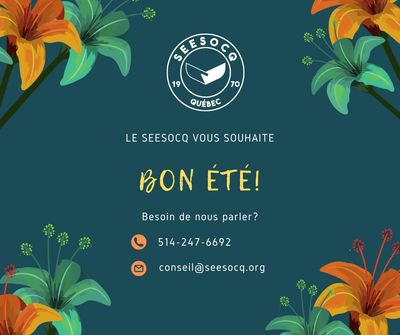 En cette fin de juin, c'est le temps de vous souhaiter, au nom de l'équipe du SEESOCQ, de bonnes vacances estivales, qu'elles soient débutées ou à venir!